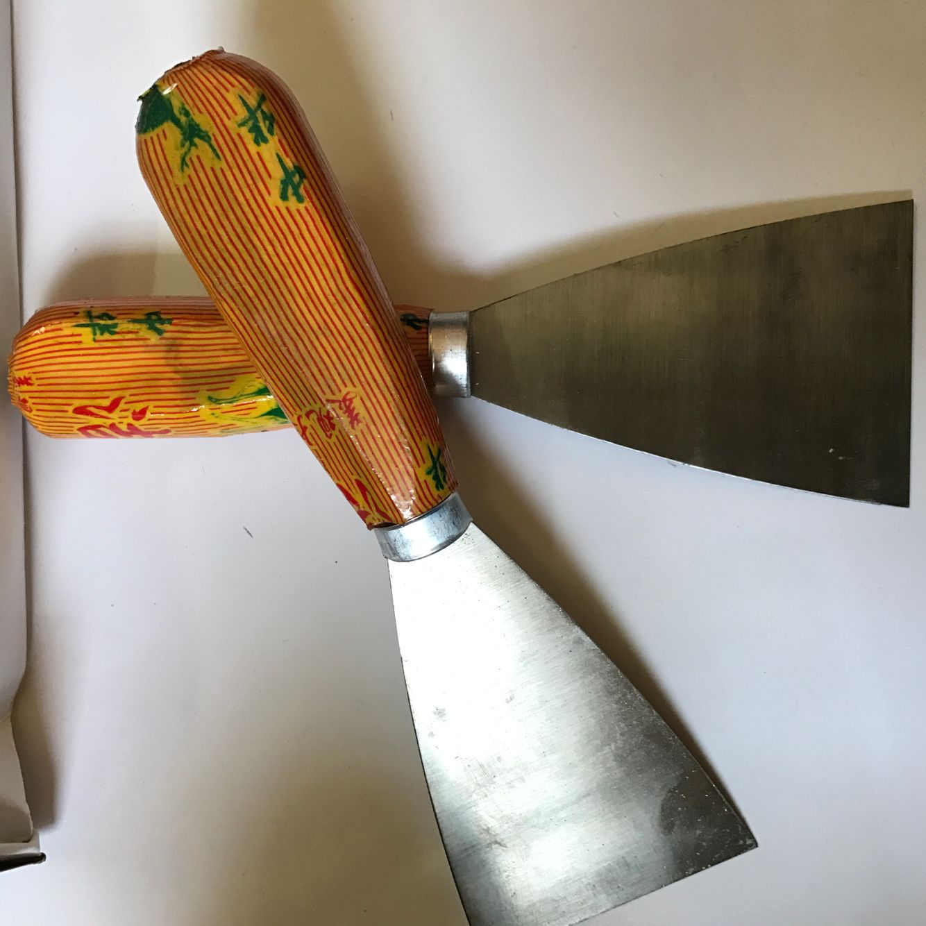 Grosir stainless steel pegangan warna ganda pisau dempul pegangan plastik sekop pisau batch pegangan kayu klip ganda cermin memoles sekop