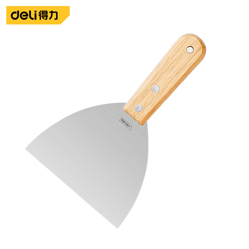 Alat Deli DL-HD5C pegangan kayu pisau dempul 5 inci pisau dempul sekop pisau besar pelat besi plester dempul pisau