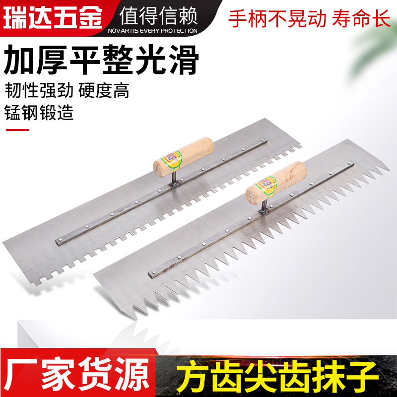 Sekop gigi ujung persegi 60*12cm ubin papan lumpur baja mangan dengan papan lumpur gigi pekerja tanah liat sekop datar