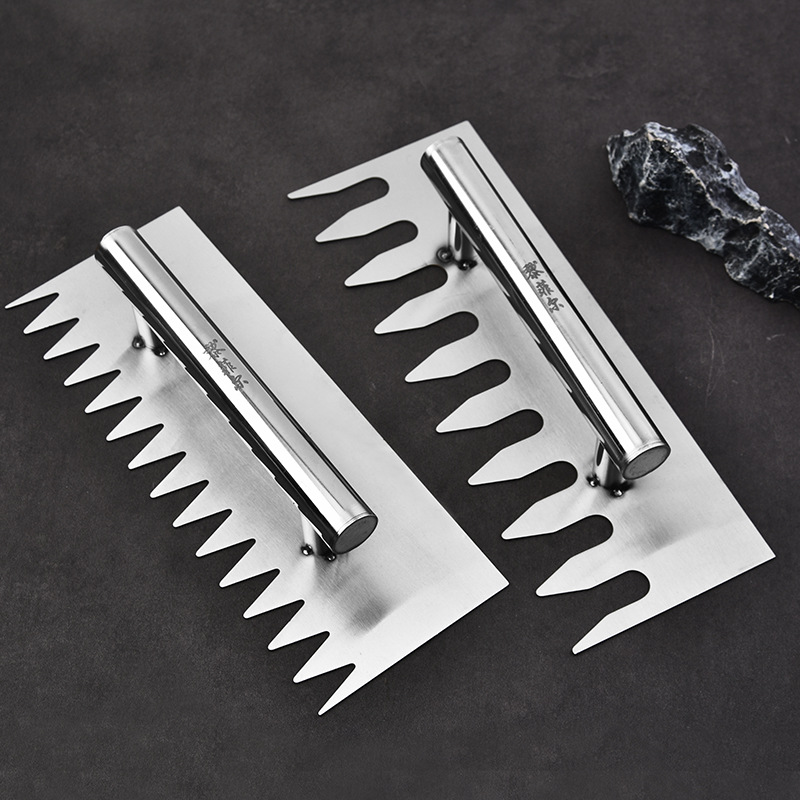 SK5 spatula bergerigi baja tahan karat, pisau plester bergerigi spatula batu ubin abu-abu