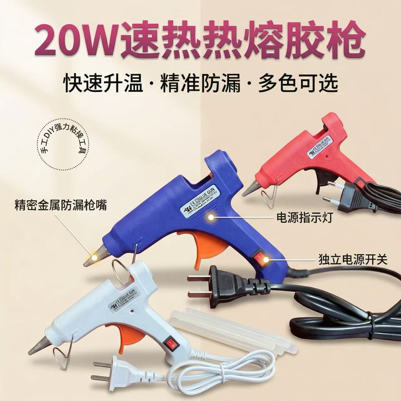 Pistol lem panas meleleh 20w dengan lampu saklar cocok untuk pabrik tongkat karet 7mm grosir