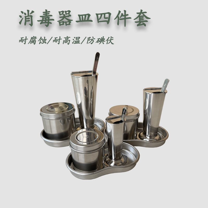 Peralatan desinfeksi medis stainless steel 304, empat buah set nampan desinfeksi piring melengkung + tabung katun + Pinset + tabung sumpit