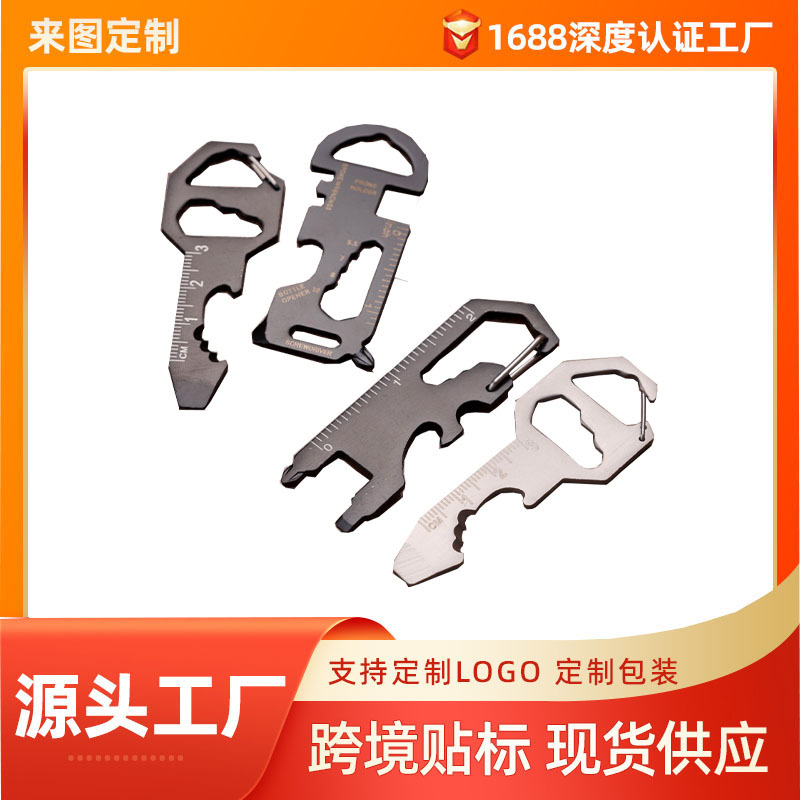 Alat Multifungsi Luar Ruangan Lintas Batas Laser Logo Hadiah Kecil Portabel Stainless Steel Kunci Pembuka Botol Bir