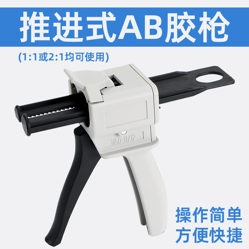 AB lem tembak gesper logam 50ml, tabung ganda manual mendorong lem AB 1:1 2 sampai 1 lem tabung pencampur dua komponen