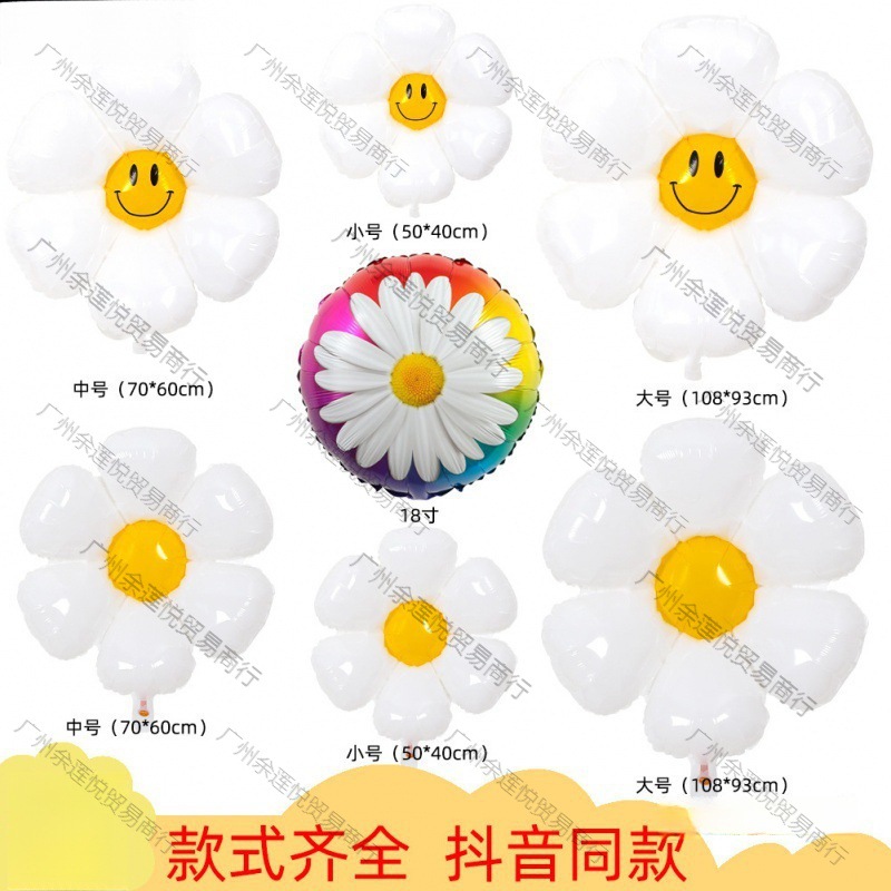Film aluminium baru balon aster balon putih wajah tersenyum alat peraga foto balon bunga telur bunga matahari balon bunga aster
