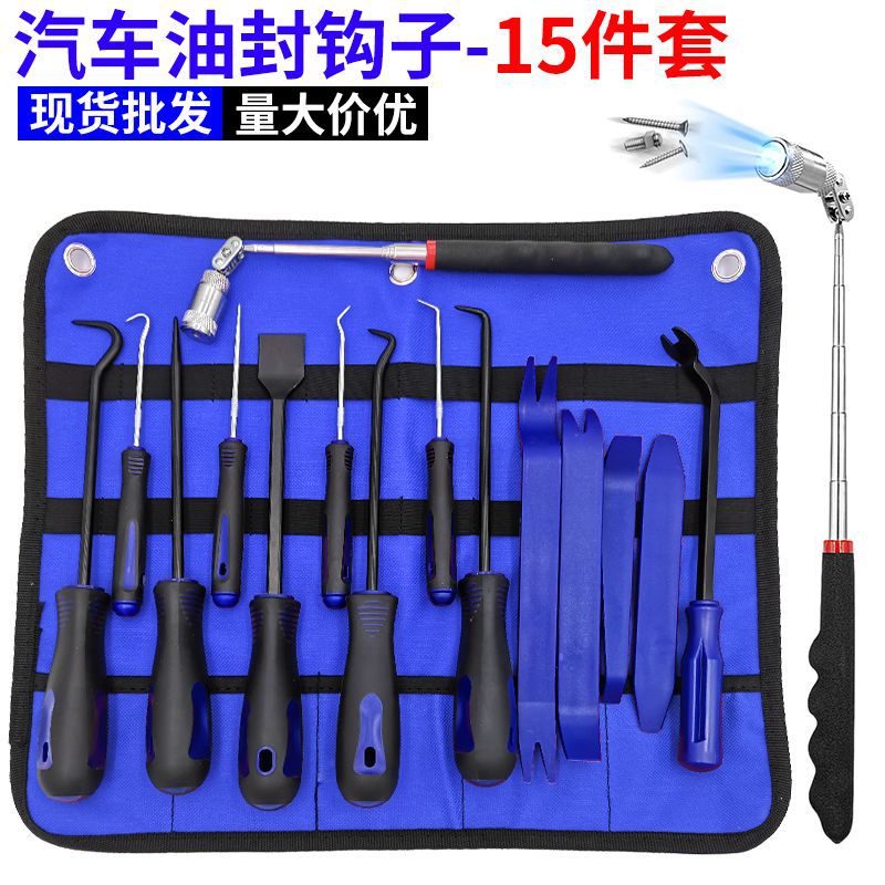 Modifikasi mobil linggis segel minyak obeng kait silinder sekop batang hisap minyak segel cincin alat pembongkaran 15-piece set