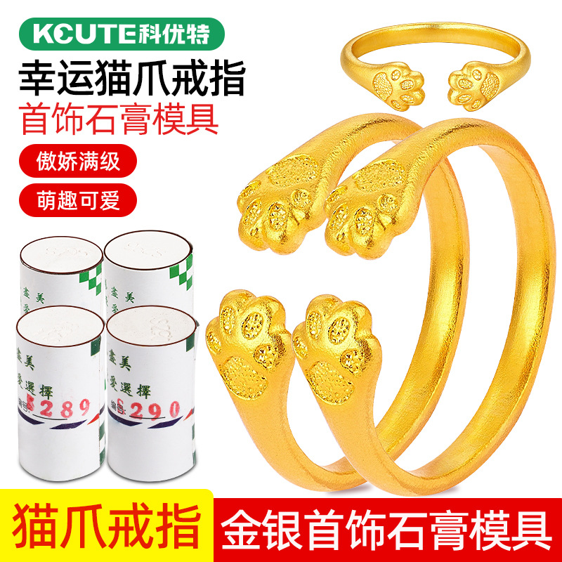 Lucky Fortune Cat Cakar Cincin Gypsum Cetakan Emas dan Perak Pembukaan Meow Meow Cakar Cincin Cincin Perhiasan Emas