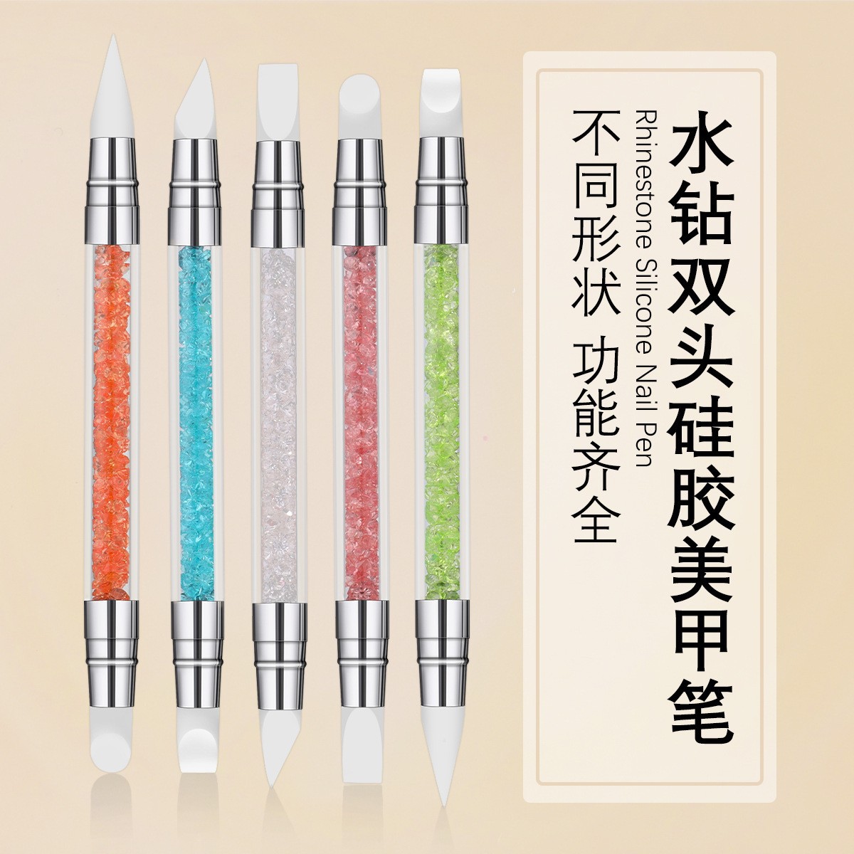 Pena Ukiran Manikur Pena Berukir Bunga Batang Gradien Cermin Pencelupan Bubuk Silikon Pena Lukisan Manikur Alat Bergambar Bunga Set Kepala Ganda