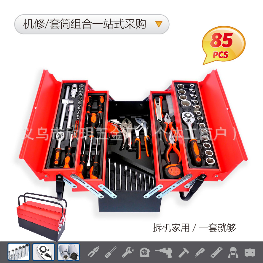 85PCS Set Kotak Besi Rumah Tangga Alat Perangkat Keras Kombinasi Perbaikan Selongsong Peluncur Slip Kepala Konversi Kepala Pergantian Spark