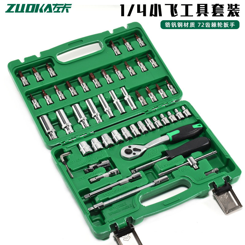Set lengan 46 buah kunci pas ratchet terbang kecil, setelan peralatan perbaikan mobil 53 buah
