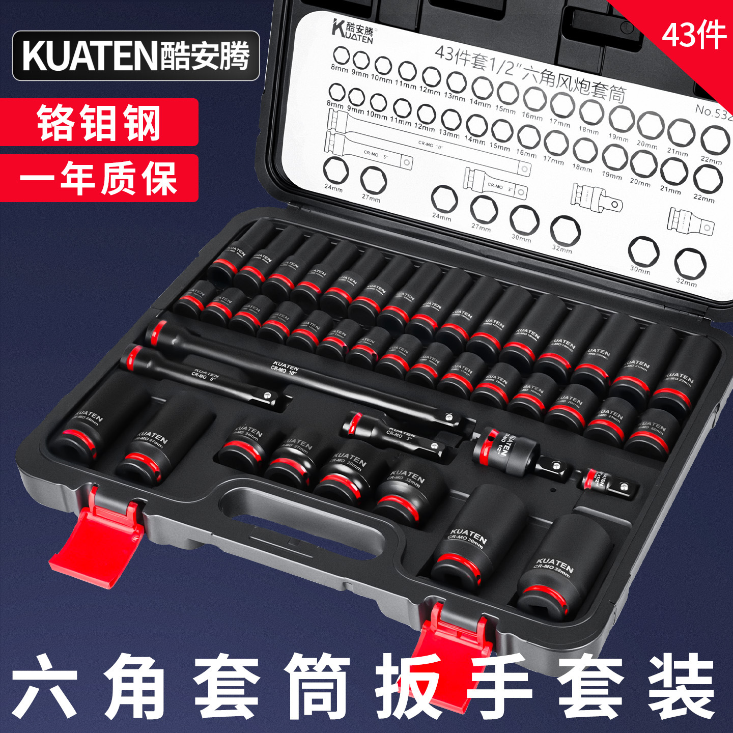 43 buah set 1/2 soket heksagonal diperpanjang kombinasi setelan pneumatik kunci pas elektrik kepala soket besar terbang kecil senapan udara