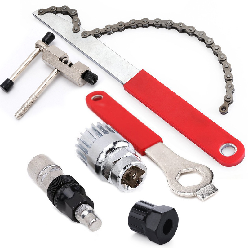 Setelan peralatan perbaikan sepeda, alat perbaikan sepeda, kunci pas bongkar pasang, lengan poros tengah, alat kombinasi