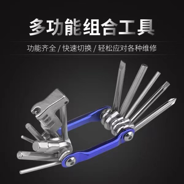 Alat perbaikan sepeda, warna aluminium Aloi alat perbaikan sepeda setelan portabel multi-fungsi kombinasi kunci segi enam dengan pemotong rantai