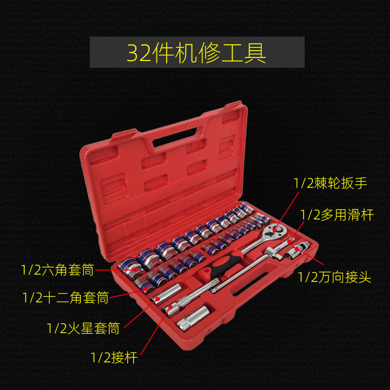 Manual sabuk biru 32 potong kunci pas soket, mesin perbaikan otomatis kombinasi lengan set alat perbaikan listrik