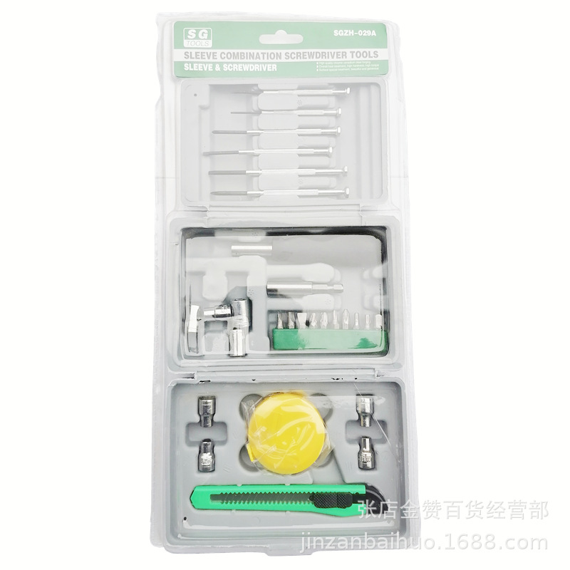 24 buah kotak alat rumah tangga multifungsi, setelan alat kombinasi perangkat keras kotak plastik