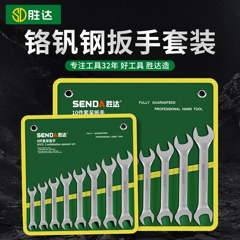 Shengda tas gantung kunci terbuka hitam besar, set lengkap 8-10 garpu solid kunci pas kepala ganda