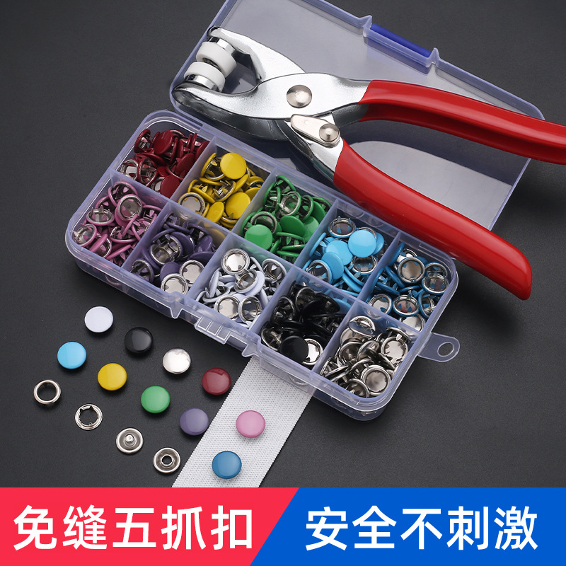 Setelan kancing baju anak-anak, setelan gesper lima cakar, berongga, warna solid, kancing jepret logam, baju bayi, kancing empat sambungan