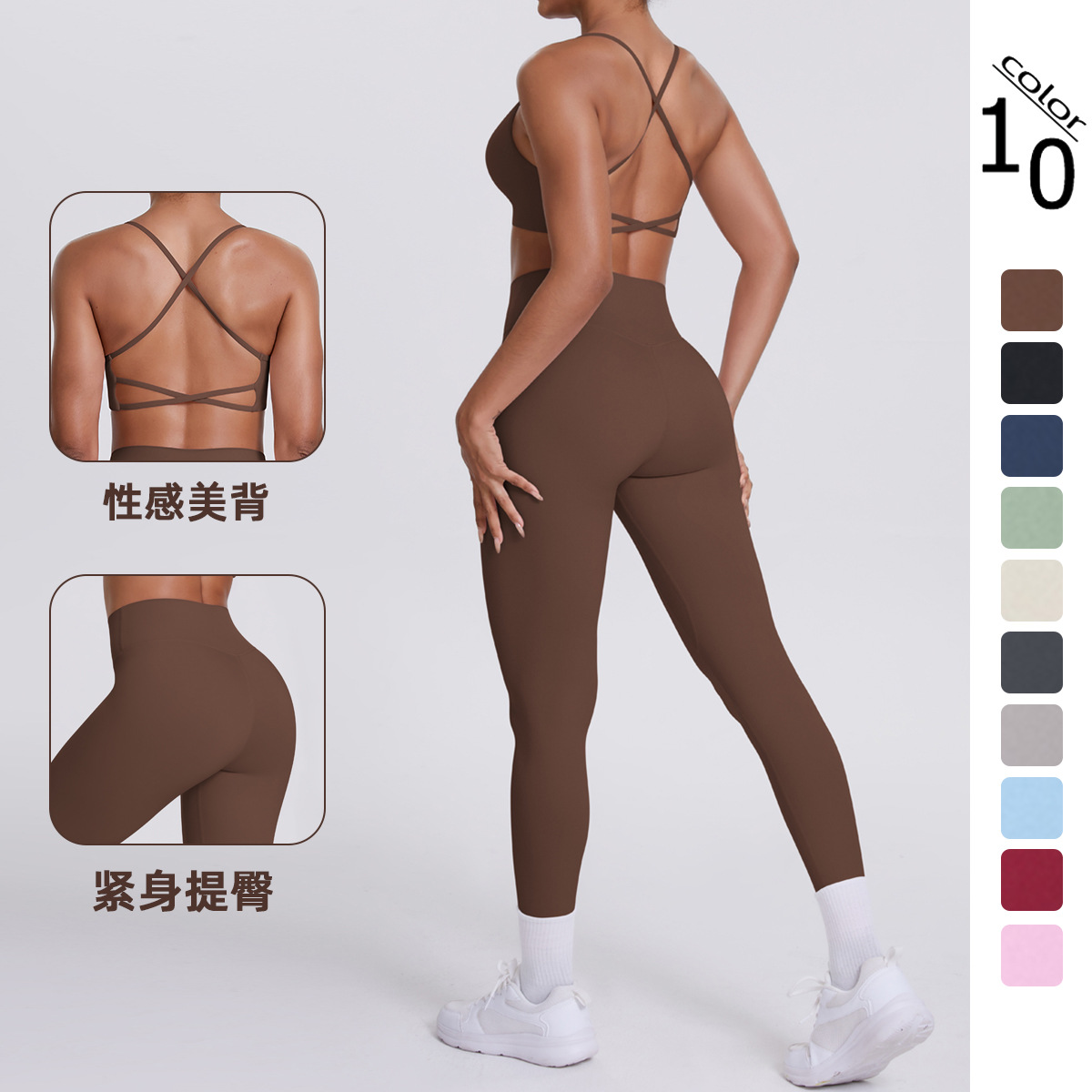Setelan Dua Potong Berlari dan Fitness Set Pakaian Yoga Olahraga Silang Ketat Punggung Amon Dua Sisi Eropa dan Amerika
