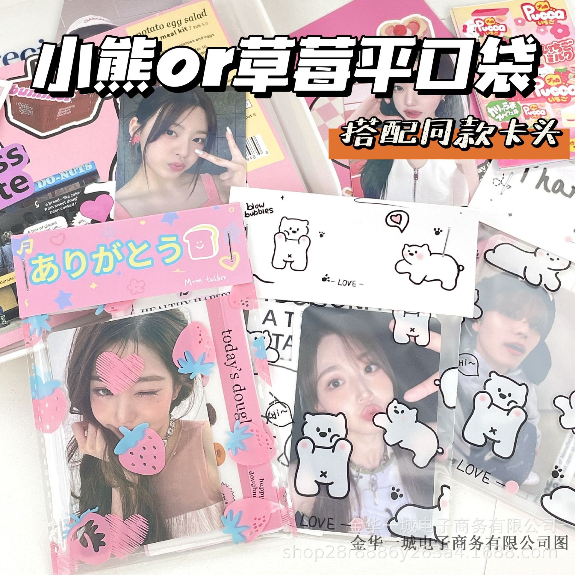 博主同款小白熊卡头套装小卡打包袋草莓套装贴纸便签透明自封袋