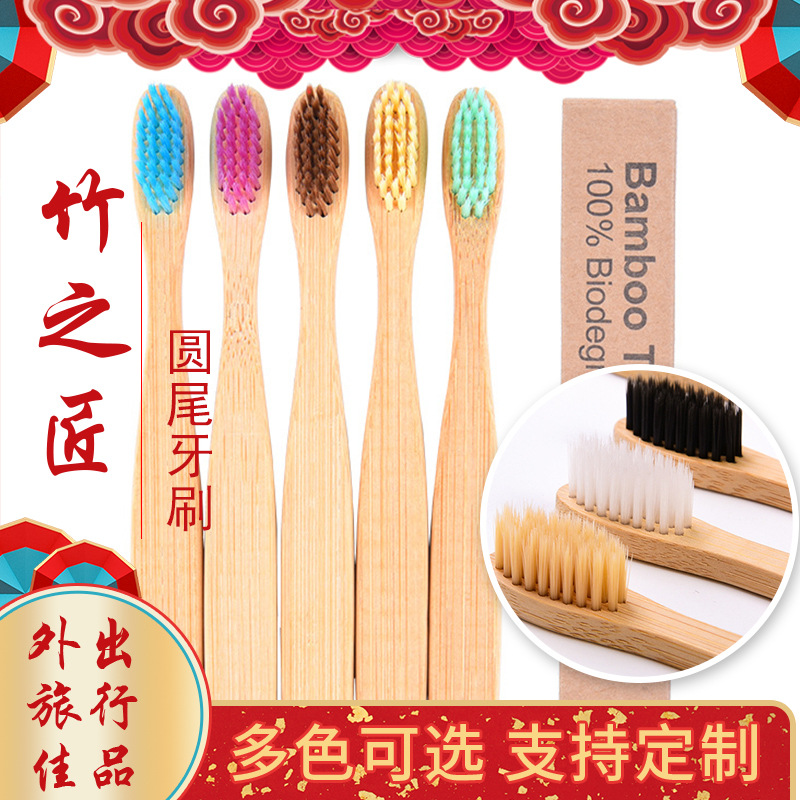 Sikat gigi bambu tunggal kotak, sikat gigi bulu bambu lembut dapat terdegradasi sikat gigi ekor bulat datar diskon besar