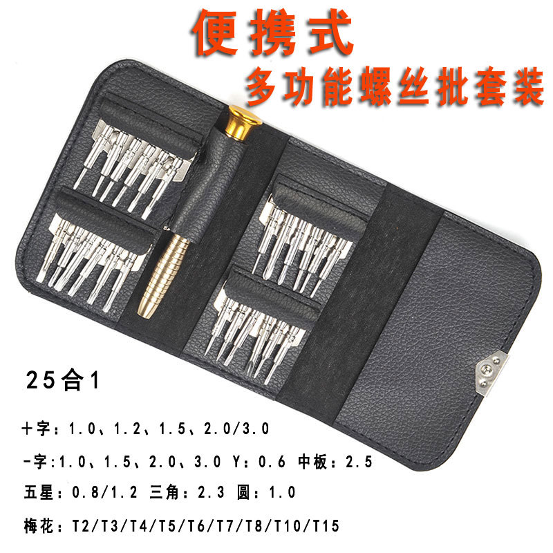 Setelan reparasi dan bongkar pasang kacamata notebook ponsel, obeng tas kulit kombinasi 25 dalam 1