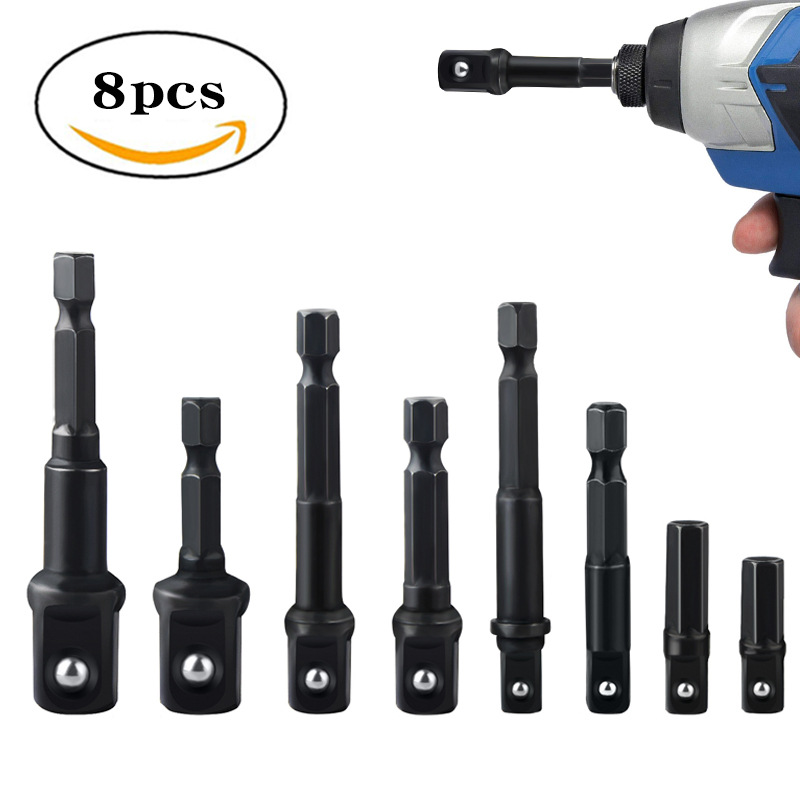 Xinsentuo 8 buah bola baja batang penghubung AD kunci pas soket alat konversi hitam heksagonal pegangan sabuk pengaman manik batang penghubung