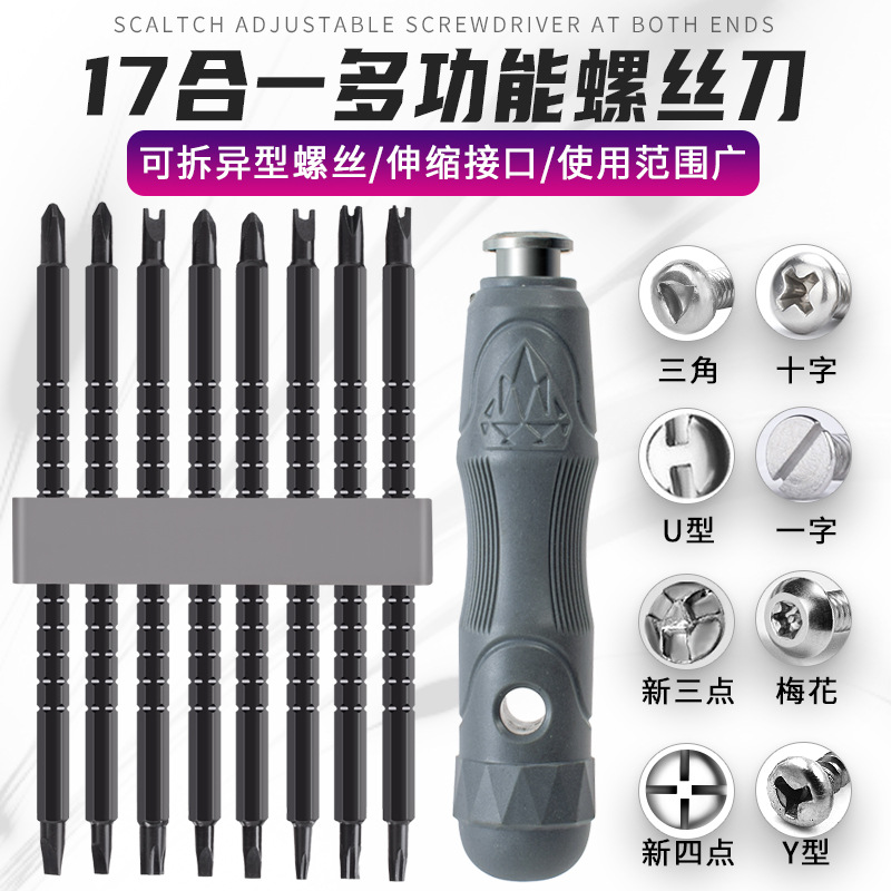 Setelan Obeng multifungsi 17 dalam satu, obeng alat perbaikan kombinasi rumah tangga bentuk khusus magnetik kuat