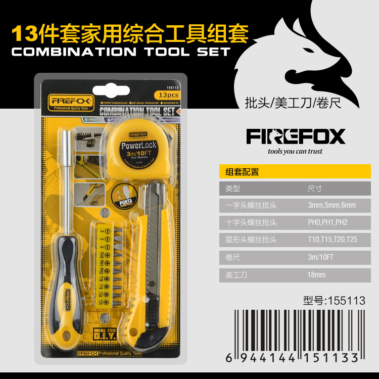 Set perkakas rumah tangga grosir: set obeng dan meteran pita 5 buah, kombinasi pisau serbaguna, set meteran pita peralatan rumah tangga.