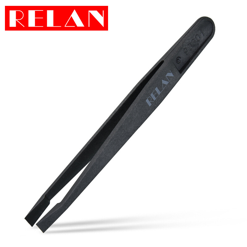 RELAN pinset plastik serat karbon hitam antistatis pinset terisolasi putih plastik ruang pemurni bebas debu tahan alkali