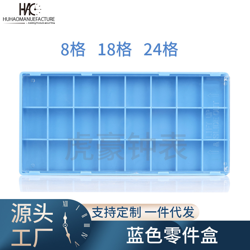 Kotak peralatan aksesori jam tangan, Laci kotak plastik pengatur biru 18/24/8
