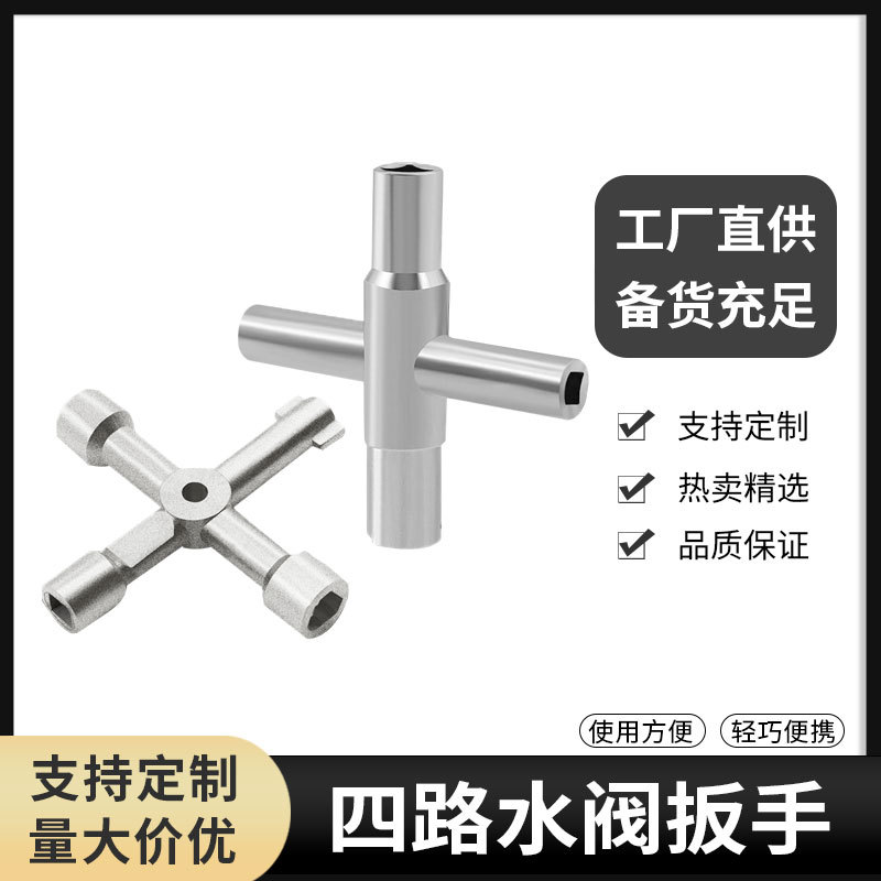 Kunci pas kamar mandi manual, alat rumah tangga 4-in-1, kunci pas perak, kunci kran silang, kunci pas persegi