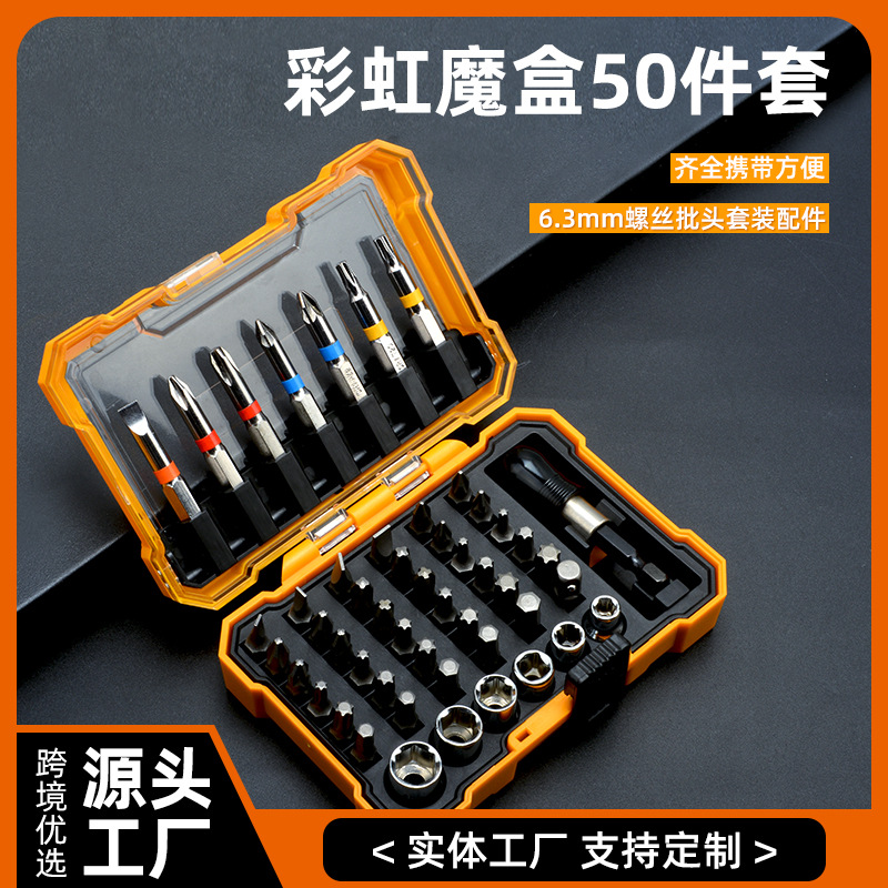 Set 50 Pcs Silinder Pelangi Kotak Ajaib Obeng 6.3mm Kuat Magnetik Kepala Obeng Set Alat Rumah Tangga