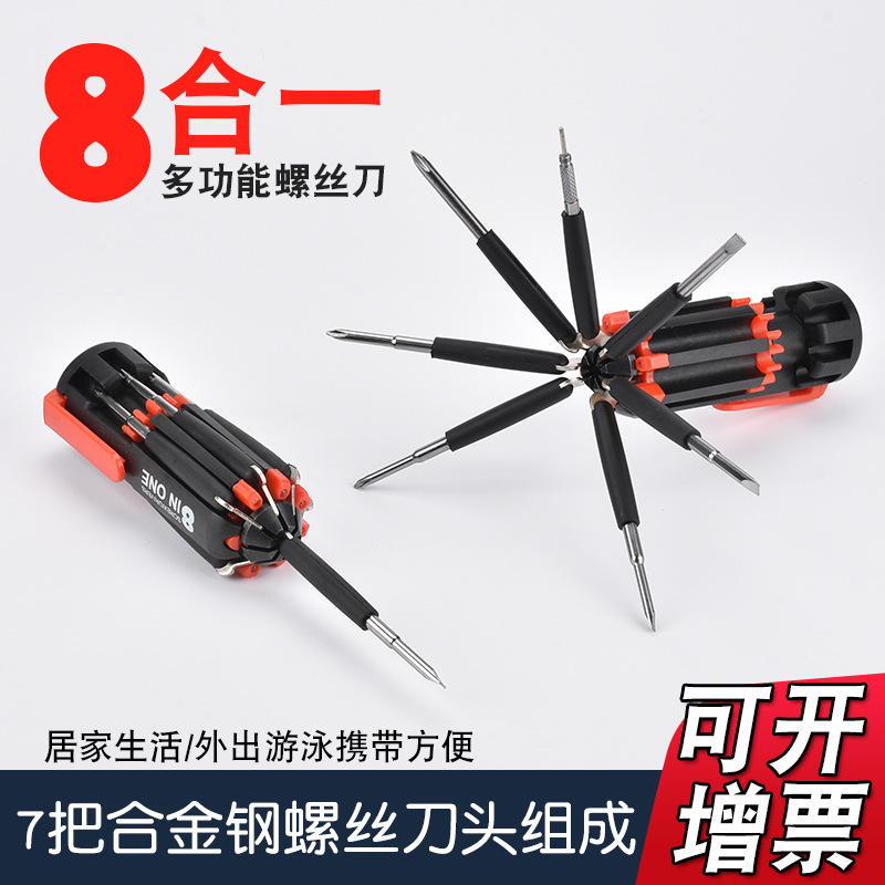 Alat obeng kombinasi rumah tangga, obeng lintas dengan lampu LED multifungsi 8 dalam 1