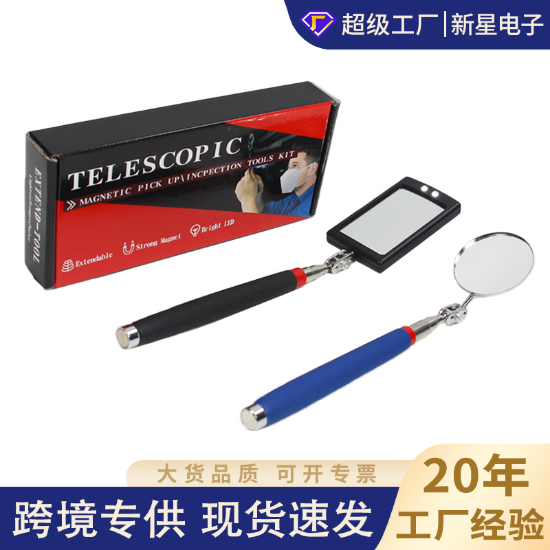 Grosir alat pengambilan magnetik kuat 2-in-1 pickup magnetik teleskopik dengan 50mm cermin kotak inspeksi dengan LED lintas batas