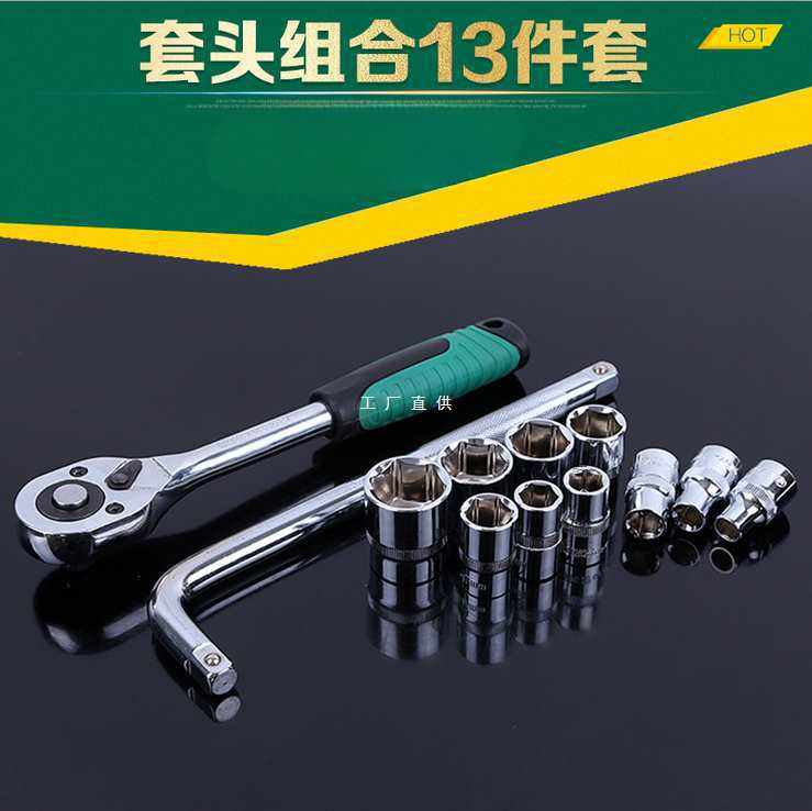 Setelan lengan mobil pembongkaran hemat tenaga kerja 13 buah mesin perbaikan otomatis perbaikan ratchet kombinasi casing kunci pas kotak alat perbaikan