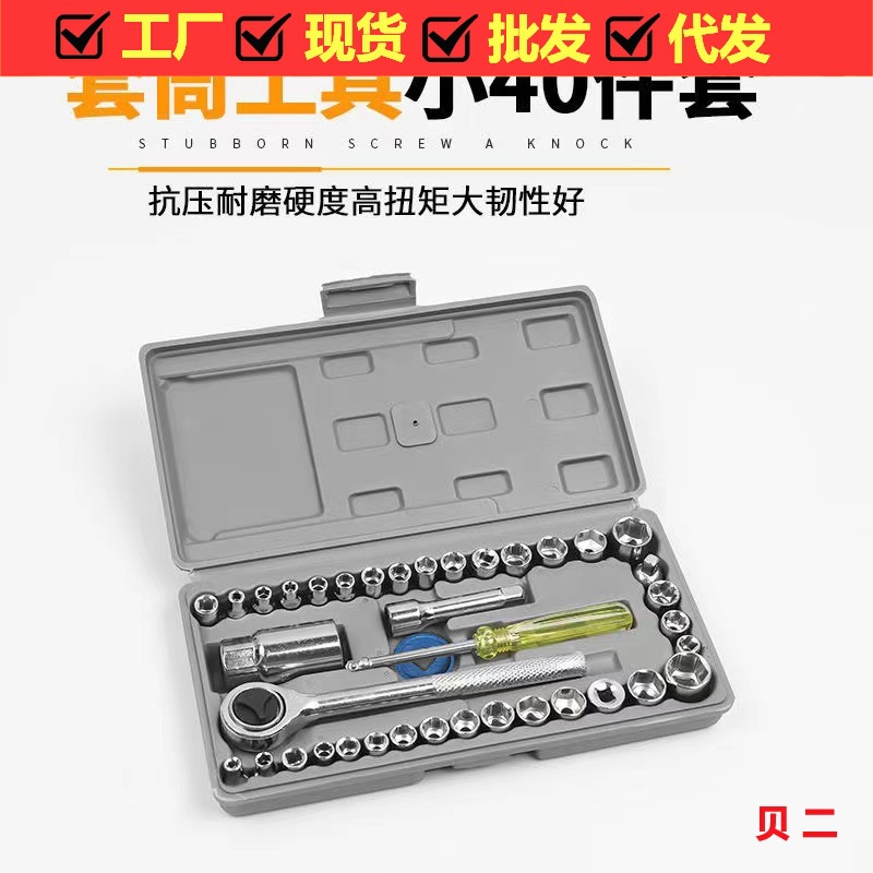 Set peralatan perbaikan otomatis 40 buah, kotak alat perbaikan soket darurat, kunci pas kombinasi