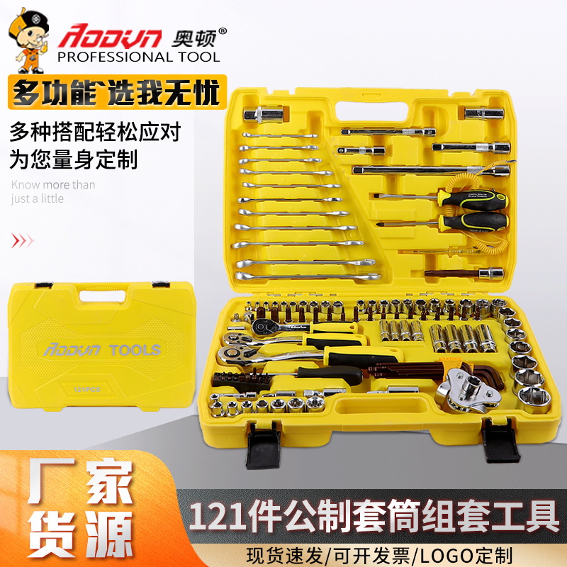 Toolbox set lengkap multi-fungsi rumah tangga, ratchet soket kunci pas perbaikan otomatis alat sepeda motor setelan grosir