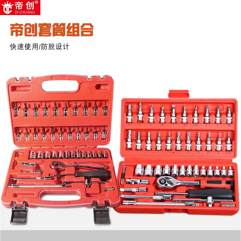 Dichuang setelan perbaikan mobil 46 buah, alat perbaikan mobil, sepeda motor, set lengan ratchet cepat, 46 buah