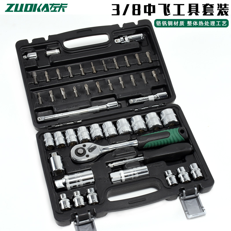 Zhongfei kunci pas soket roda bergigi sedang set isi 48 buah alat perbaikan otomatis cepat medium set lengkap