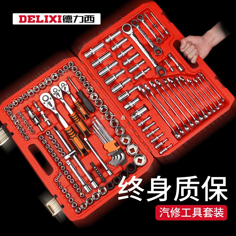 Delixi Alat Perbaikan Otomatis Set Lengan Kunci Pas Ratchet Mobil Perbaikan Mobil Kotak Perbaikan Serbaguna Xiaofei