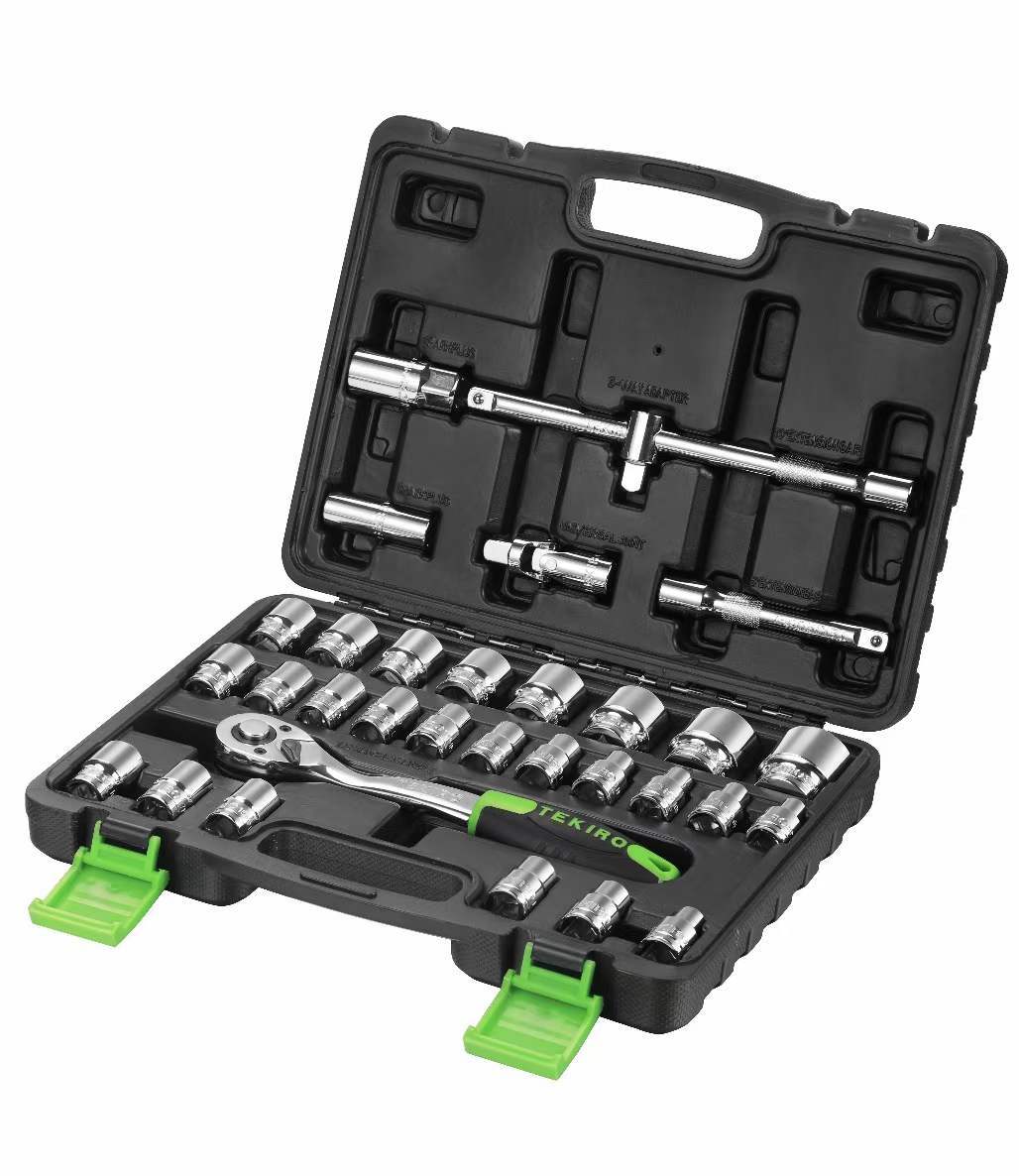 Tuoma set 32 potong kunci pas soket, set peralatan reparasi mobil, kotak alat busi, kunci soket 32 potong