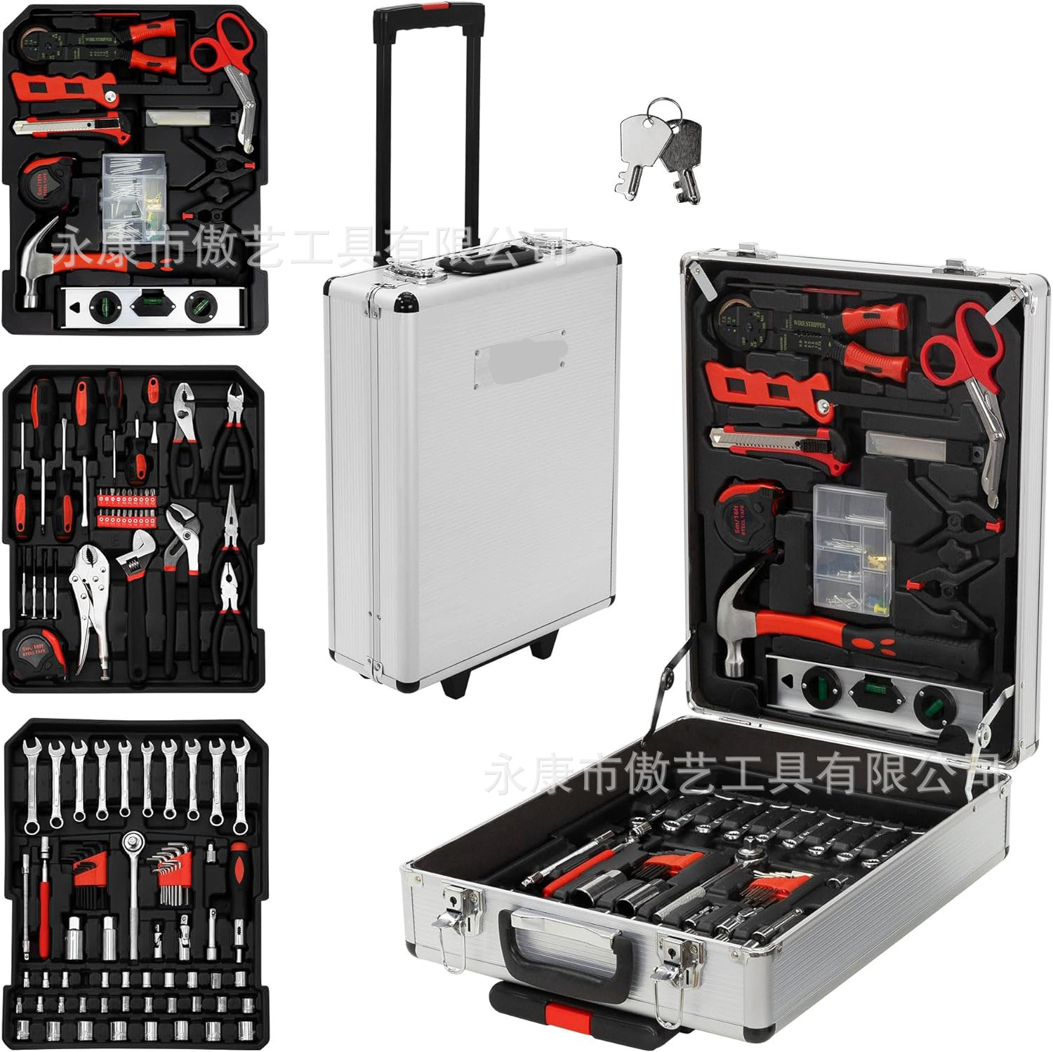 Set troli kotak aluminium 499 buah, setelan kunci ratchet, set alat pembuka