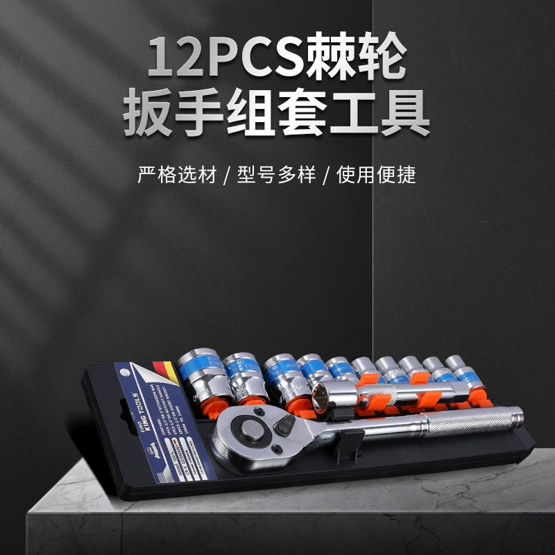 12 BH set soket kunci ratchet, alat perbaikan rumah tangga, kunci pas ratchet