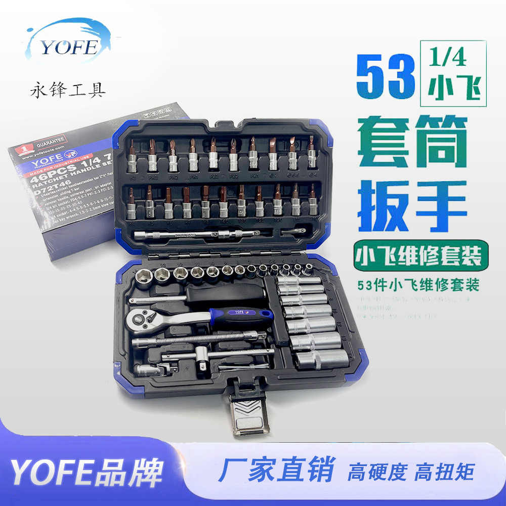 Yongfeng kunci pas kotak peralatan perbaikan, kunci pas ratchet 53 potong kombinasi auto perbaikan set perangkat keras mesin metrik perbaikan