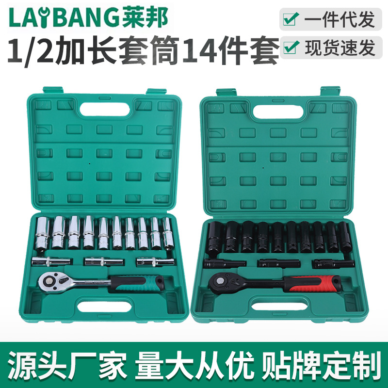 Kunci pas elektrik segi enam cermin 1/2, set 14 potong, lengan panjang, kunci pas elektrik heksagonal terbang besar, setelan kepala lengan antarmuka 12.5mm