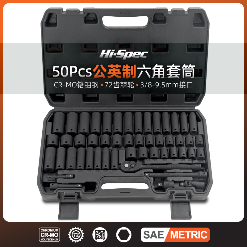 Hi-Spec 50 buah 3/8 selongsong medium-flounder cannon hexagonal panjang selongsong dampak ratchet