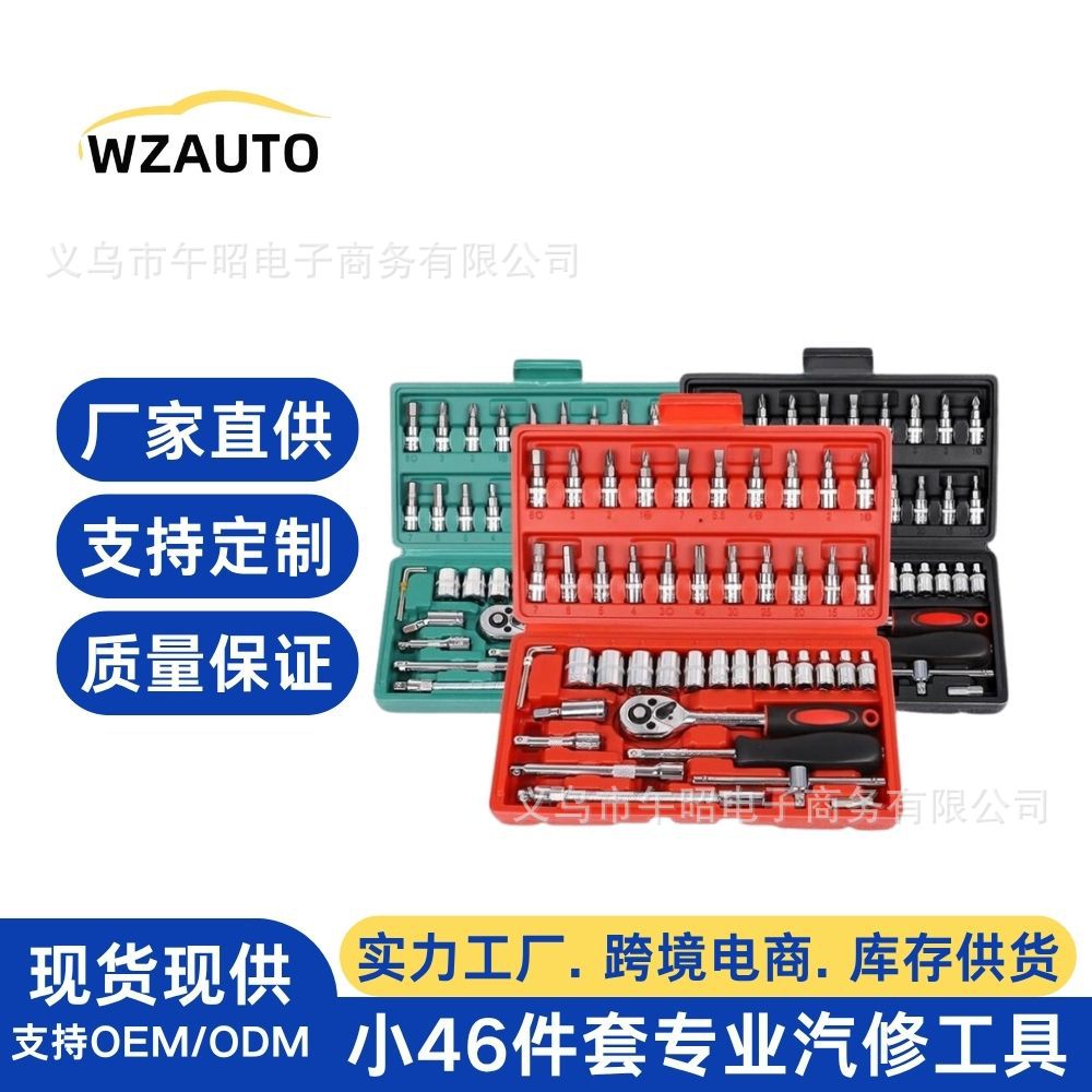 Alat perbaikan otomatis, peralatan soket kunci pas ratchet 46 buah alat kombinasi kepala batch