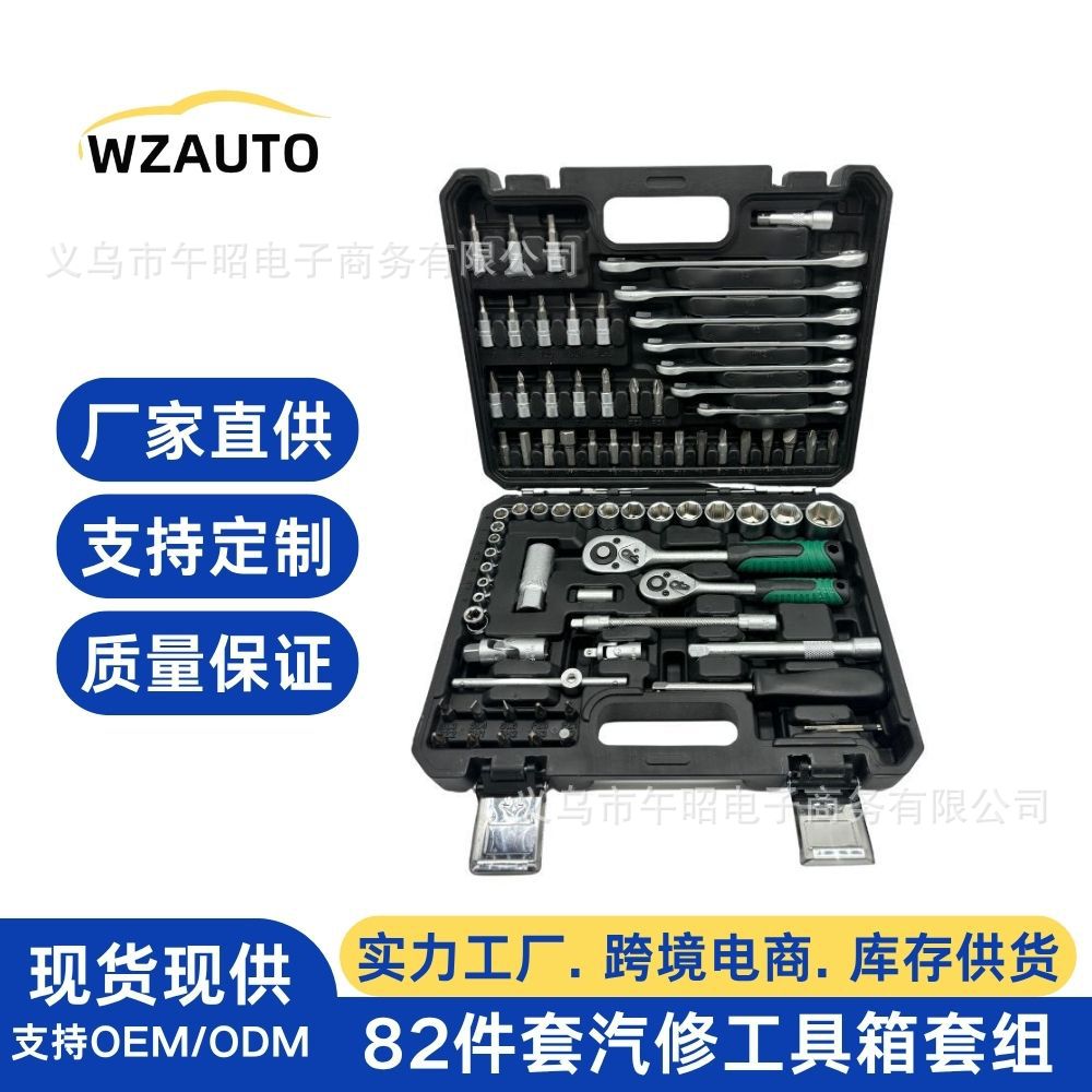 Set lengkap reparasi mobil, kotak kombinasi casing lengkap kunci pas soket ratchet mobil multifungsi ditingkatkan 82 buah