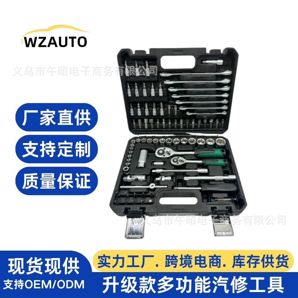 Set lengkap reparasi mobil, kotak kombinasi casing lengkap kunci pas soket ratchet mobil multifungsi ditingkatkan 82 buah