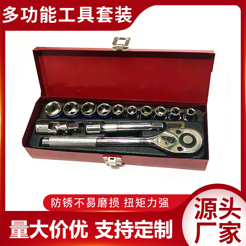 12-piece soket ratchet kunci pas kotak besi sesuai kombinasi mobil perbaikan Auto perlindungan perangkat keras alat batch